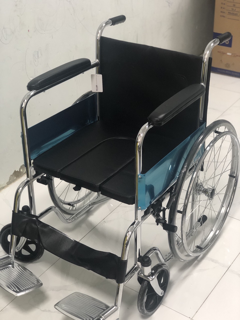 Đây cũng là sản phẩm xe lăn thường nằm ở phân khúc thấp, hiện sản phẩm được sử dụng rộng rãi trong các hệ thống bệnh viện, phòng khám để di chuyển người bệnh qua lại. Xe có khung thép chắc chắn mạ crom luôn sáng bóng sạch sẽ, phía dưới có bộ phận gác chân giúp chân người bệnh gác lên chống mỏi, ha bên thành gác tay có 2 miếng nệm lót giúp tay người bệnh luôn cảm thấy êm ái nhất.