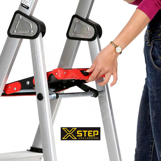 - Xstep XL-03 có tính cơ động cao, dễ gập gọn giúp người dùng mang đi bất cứ đâu một cách dễ dàng nhừ hệ thống khóa sập ngay trên 2 chân thang và tay xách thang tiện lợi.